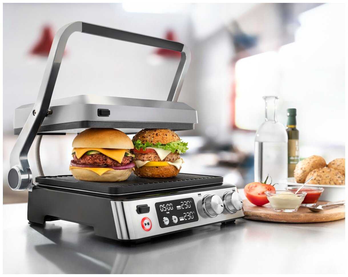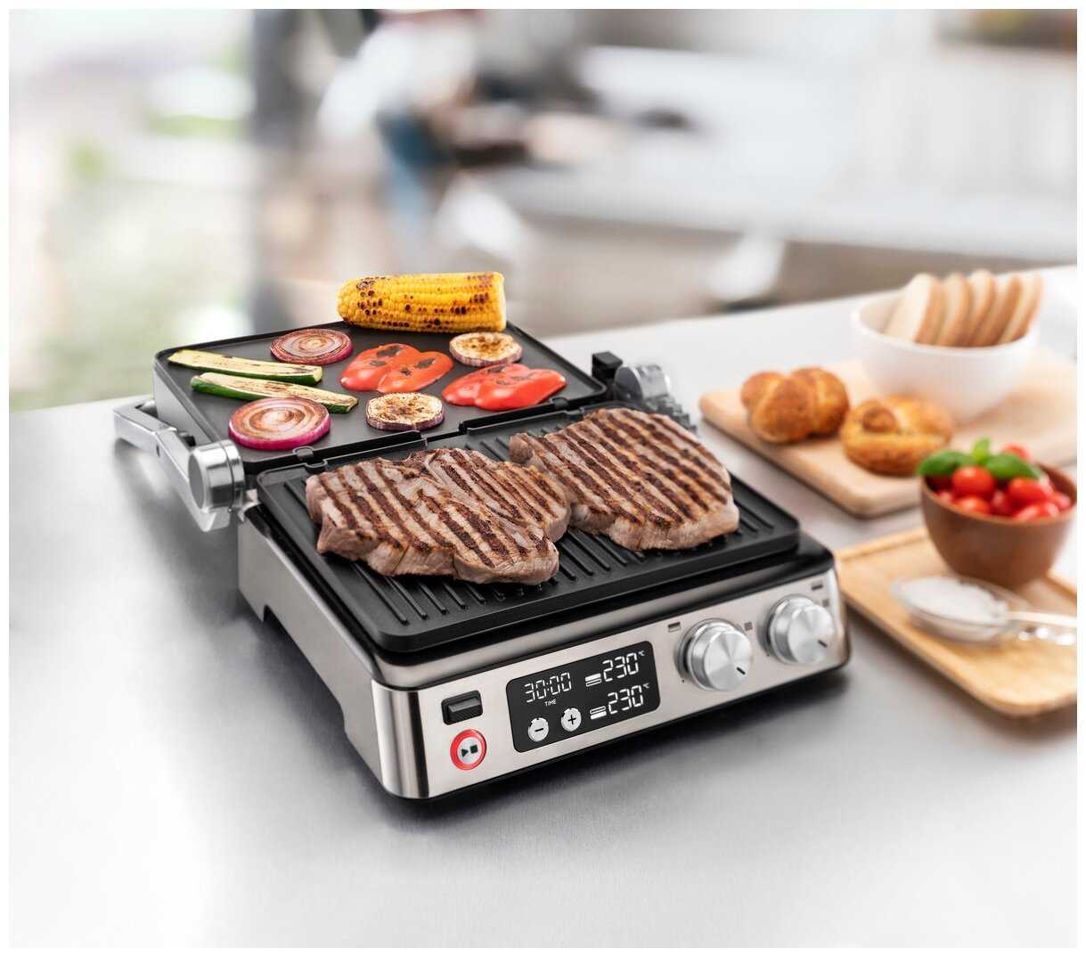 - + Гриль отлично работает, удобное управление, разнообразные панели, что позволяет готовить на нем практически все! Также удобно, что раскладывается на 180 градусов.