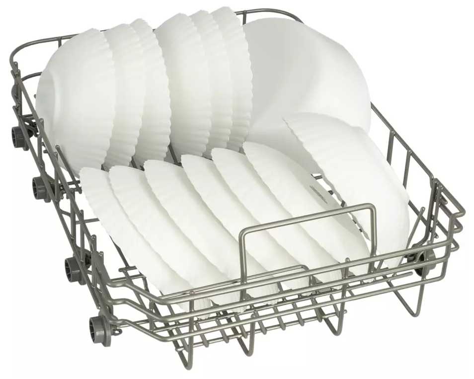 Мне не очень понравилось расположение корзин внутри машины, вернее, то, как расположены направляющие. Попробовала разместить посуду - поместилось не очень много.