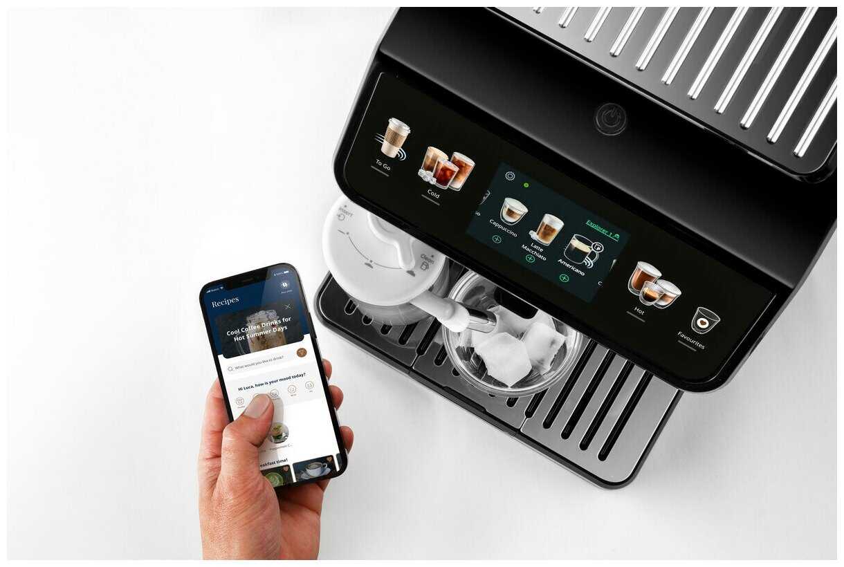 - Автоматические напоминания о необходимости очистки капучинатора или пополнении воды.