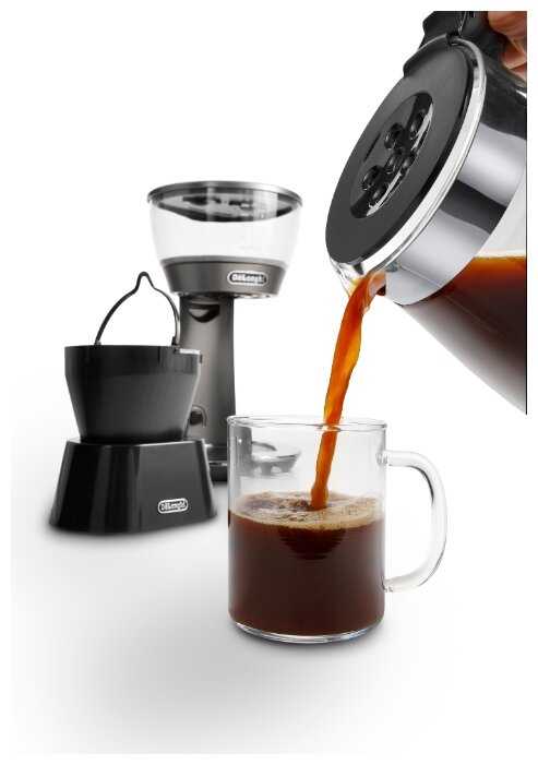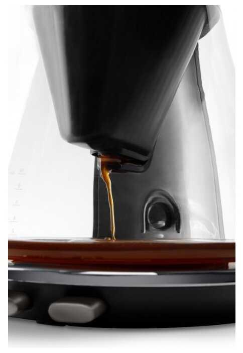 - + Вкус кофе - сравниваю с предыдущей капельной кофеваркой от Philips: брал тот же сорт кофе, то же кол-во кофе и объем воды, кофе в DeLonghi, получается менее горьким и более насыщенным, не просто так, у кофеварки сертификат ECBC.
