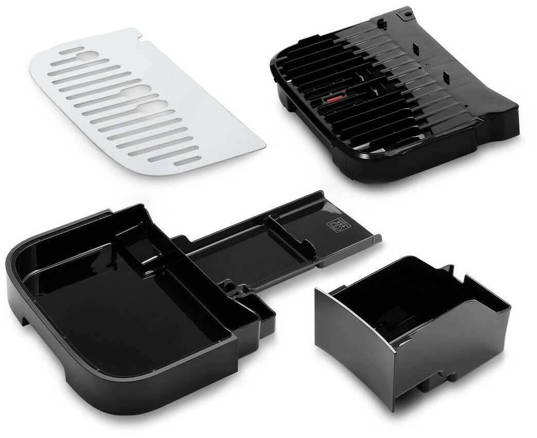 - Заварочный узел, поддон для жмыха и резервуар для воды легко снимаются для очистки.