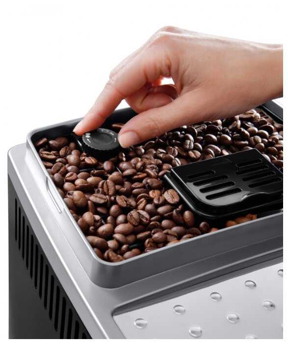 - Автоматические функции: самоочистка при включении/выключении, индикаторы для зерен, воды и отходов, двойная порция одной кнопкой.