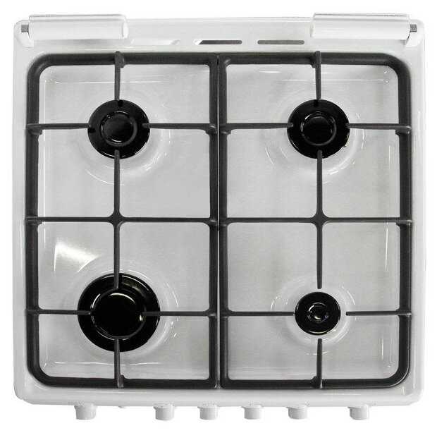 Основные плюсы, отмечаемые пользователями: компактные габариты (50х50 см), наличие электроподжига конфорок и газ-контроля, работающий гриль с вертелом, яркая подсветка духовки, приемлемое качество эмали и чугунных решеток, быстрый нагрев духовки. Для своей ценовой категории модель предоставляет необходимый минимум функций.
