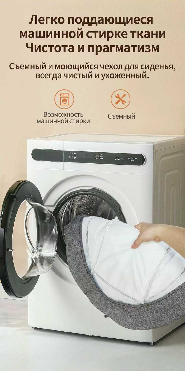 - Съемные чехлы из дышащего материала упрощают гигиенический уход через машинную стирку.