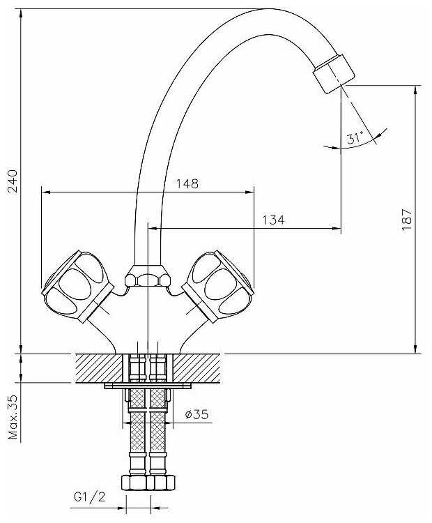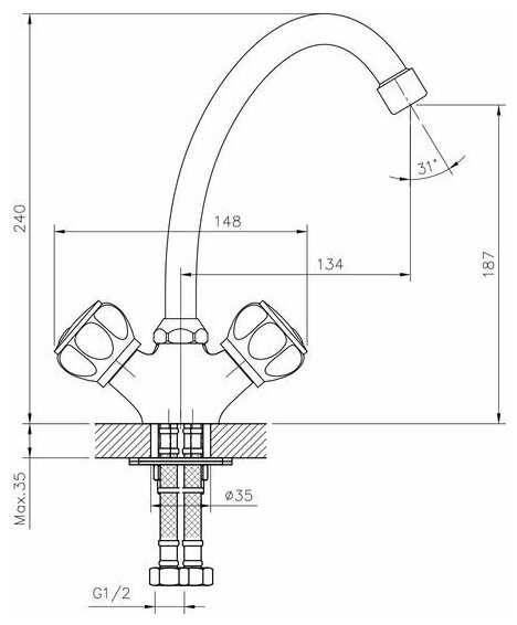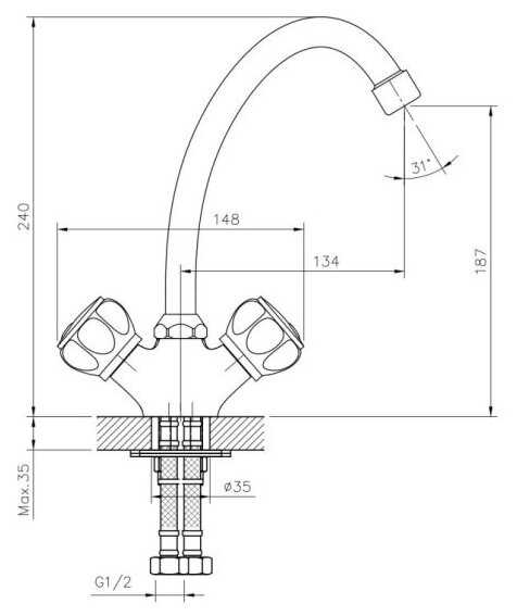 Смеситель заказывал на сайте эльдорадо, брал специально с барашками, так как к ним привык, вода в носике смешивается хорошо, нет сильных перепадов от горячей и тут же холодная или наоборот, руки мыть удобно, ничего не задеваешь из-за высоко загнутого носика.
