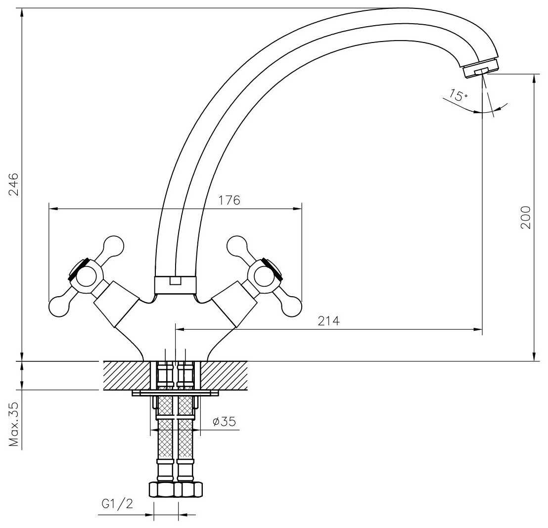 Простой, компактный смеситель на мойку для кухни. Если нужно что-то бюджетное, без изысков и классическое, то очень даже хороший вариант. Работает исправно, воду подает, на ручках резьба четкая, поворачиваются легко, подача воды быстрая.
