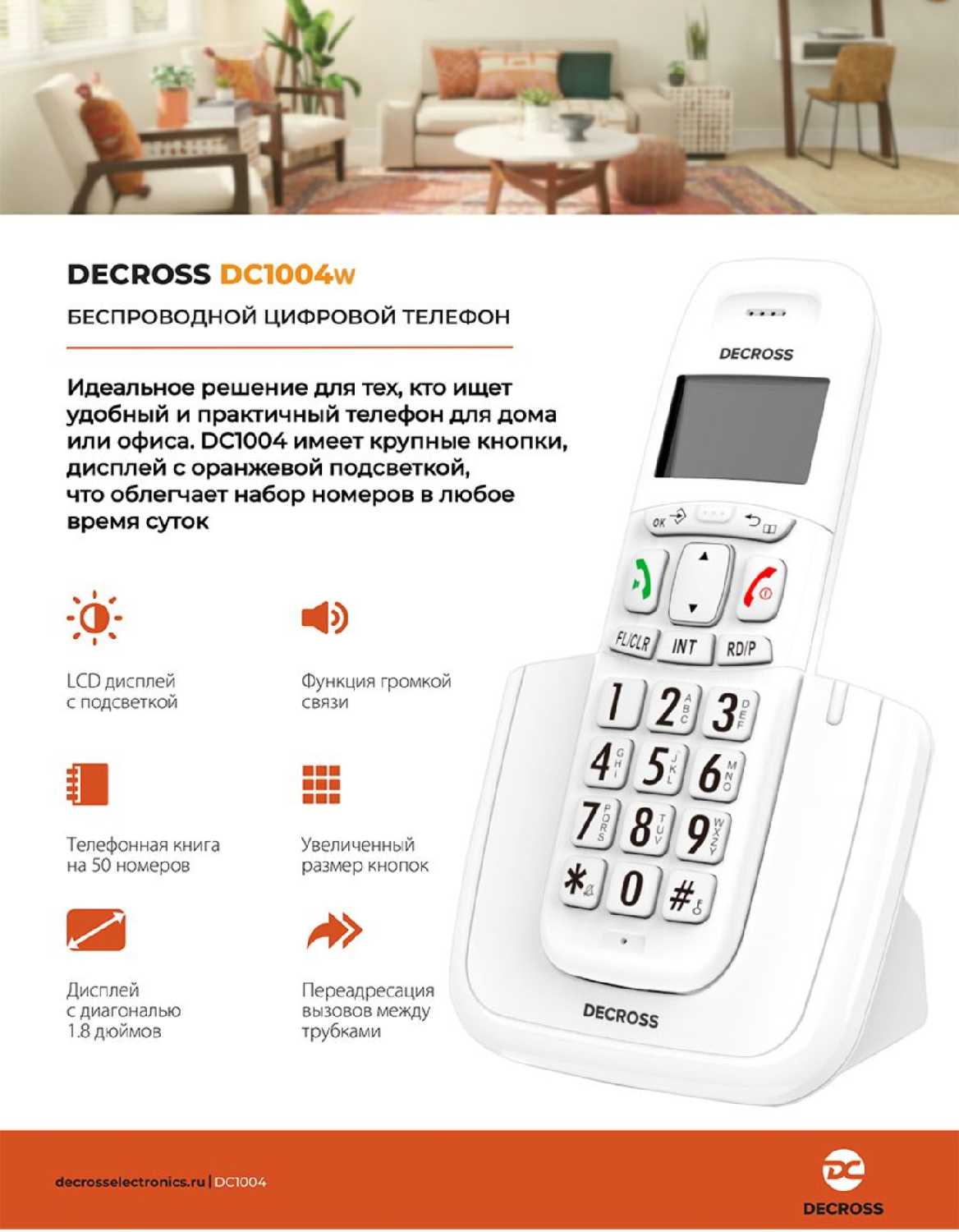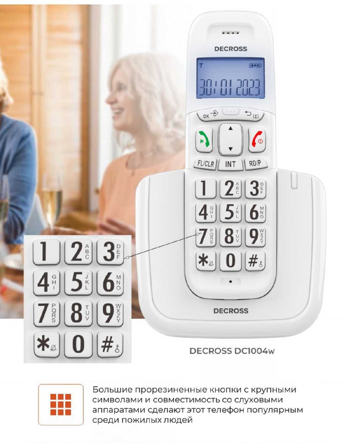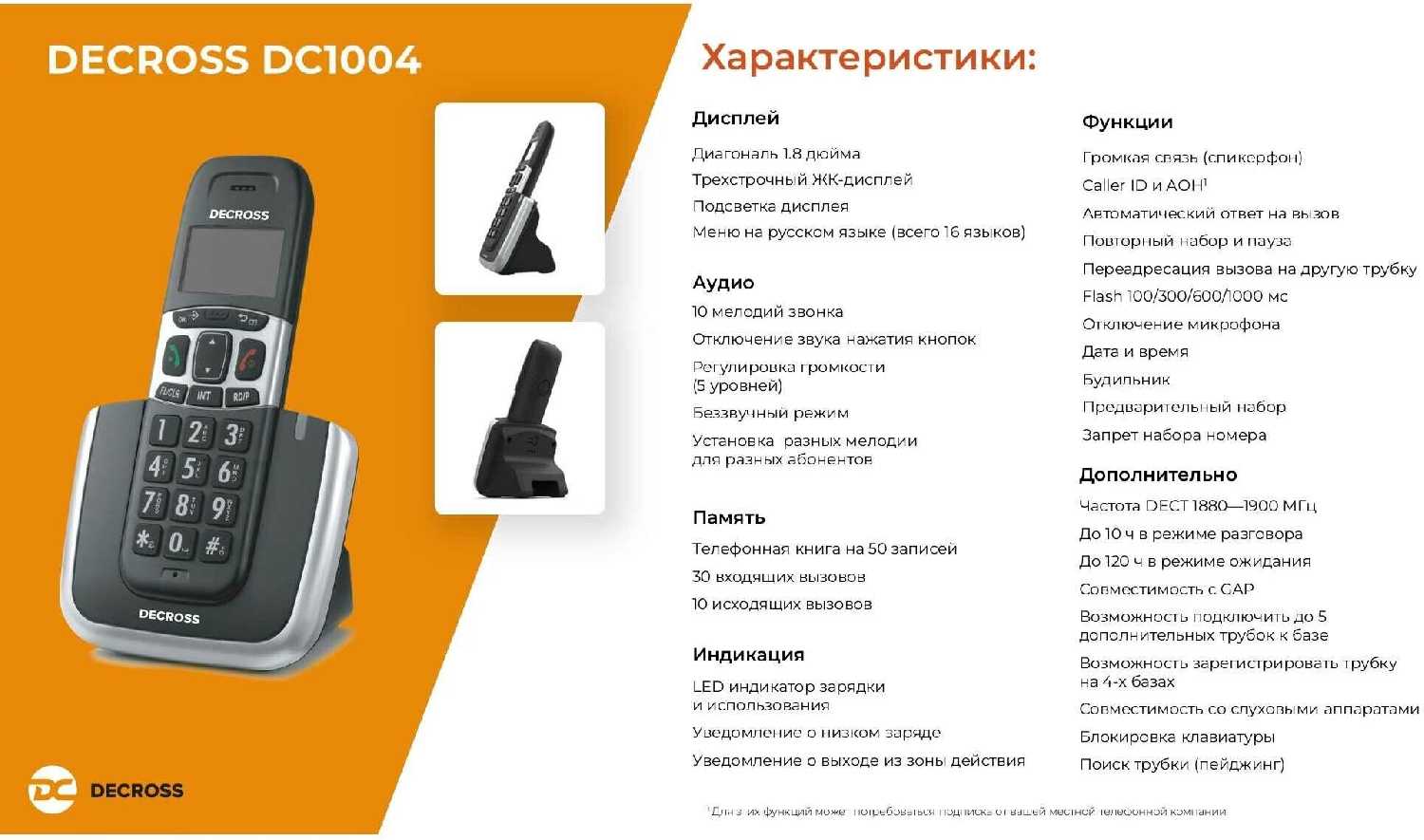 - + Хороший радиотелефон. Удобен для пожилого человека, звук громкий, хорошо видно подписи на кнопках
