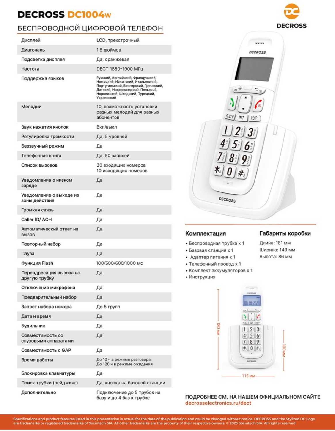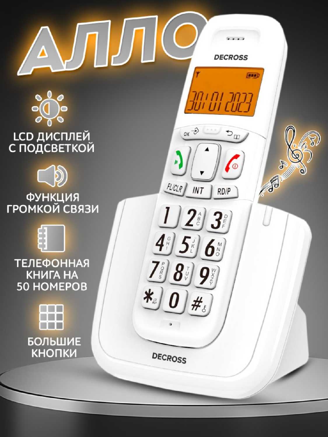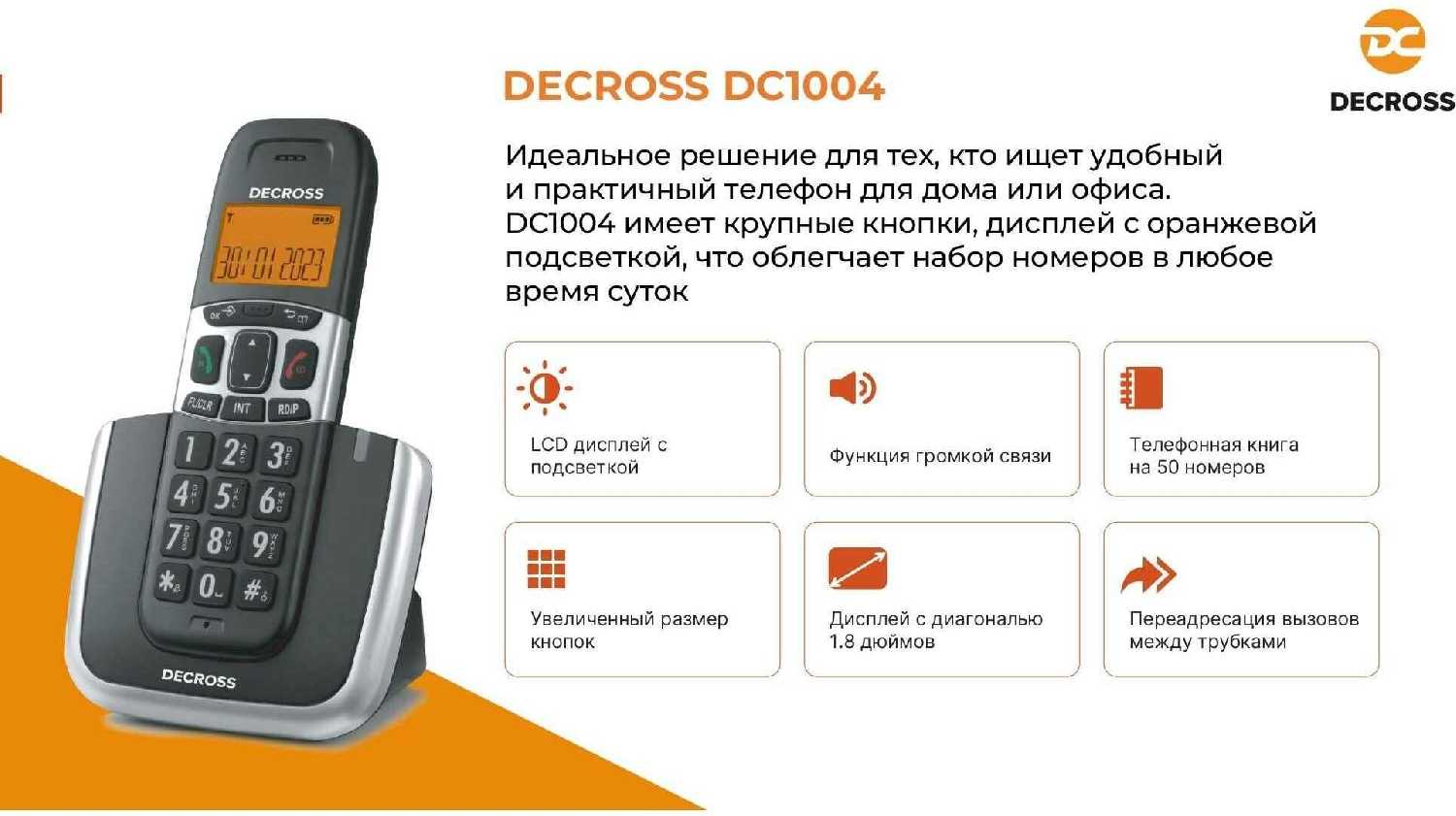 - + Хороший радиотелефон. Удобен для пожилого человека, звук громкий, хорошо видно подписи на кнопках