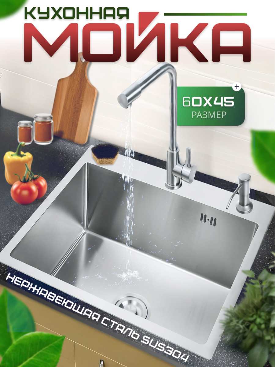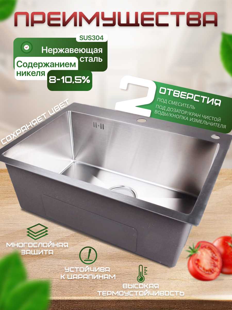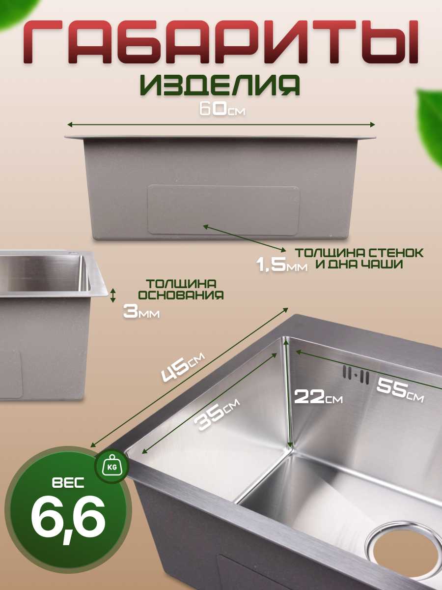 Отзывы о Мойка кухонная врезная из нержавеющей стали (60х45см)