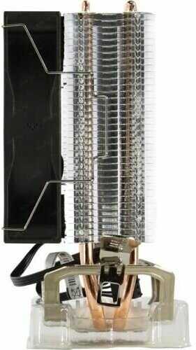 - Две медные тепловые трубки и алюминиевый радиатор обеспечивают достаточный теплоотвод для процессоров среднего уровня.
