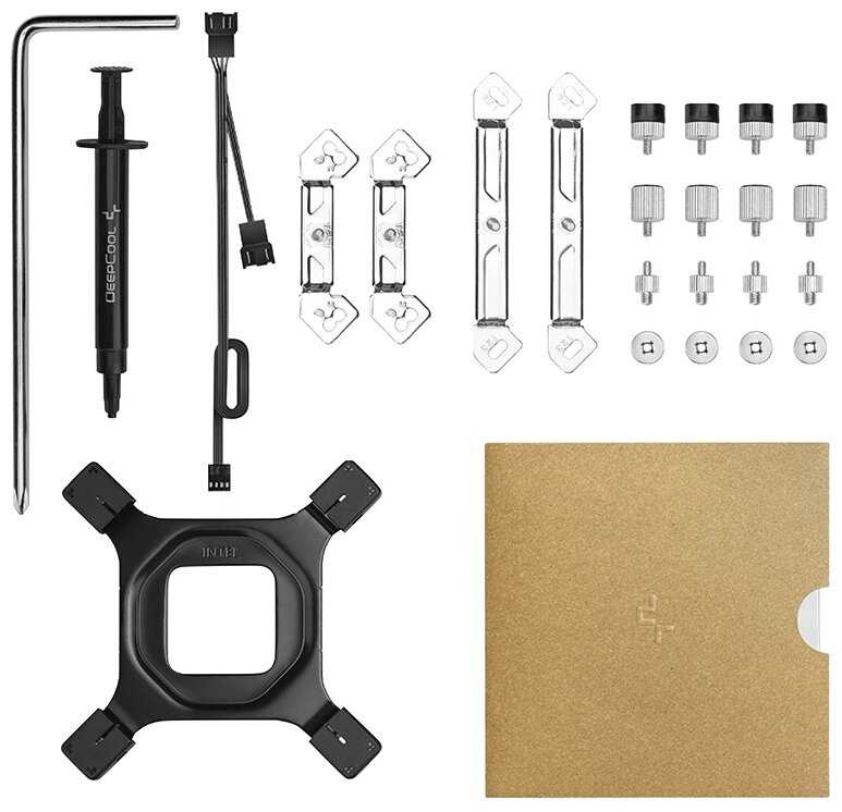 Комплект коробки: крепления под все актуальные сокеты, включая 1700 о котором тут орали что нет в комплекте, всё тут есть, нужно лишь инструкцию не полениться открыть или интуитивно догадаться, что касаемо меня, я брал для 1200 сокета сие кулёк, далее установочный крепёж в пакетиках и различные барашки, Разветвитель положили который питается от одного 4pin на мат.плате - за это спасибо Deepcool!