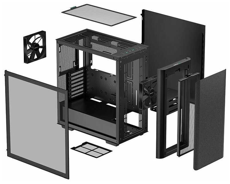 быстросъемные передняя панель и пылевые фильтры на передней панели, сверху и под блоком питания