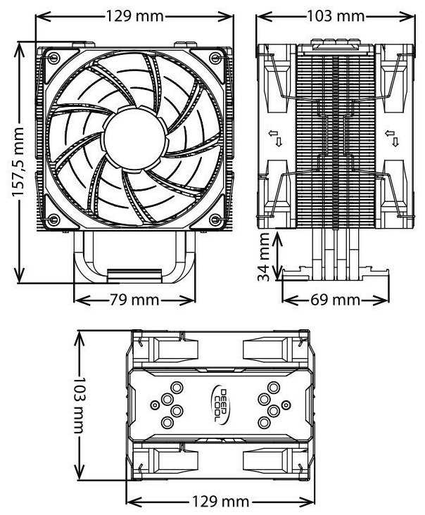 - Высота 158 мм не позволяет закрыть боковую крышку в корпусах шириной менее 165 мм (например, Fractal Design Core 1100).