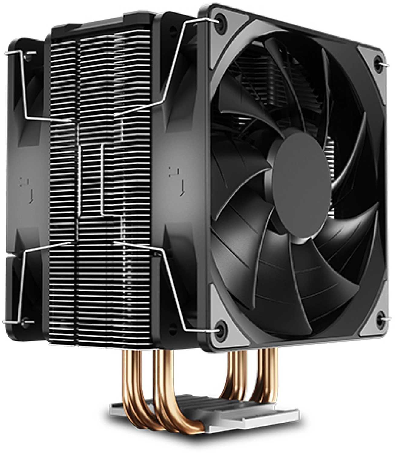 - Эффективное охлаждение благодаря четырём медным теплотрубкам и алюминиевому радиатору: