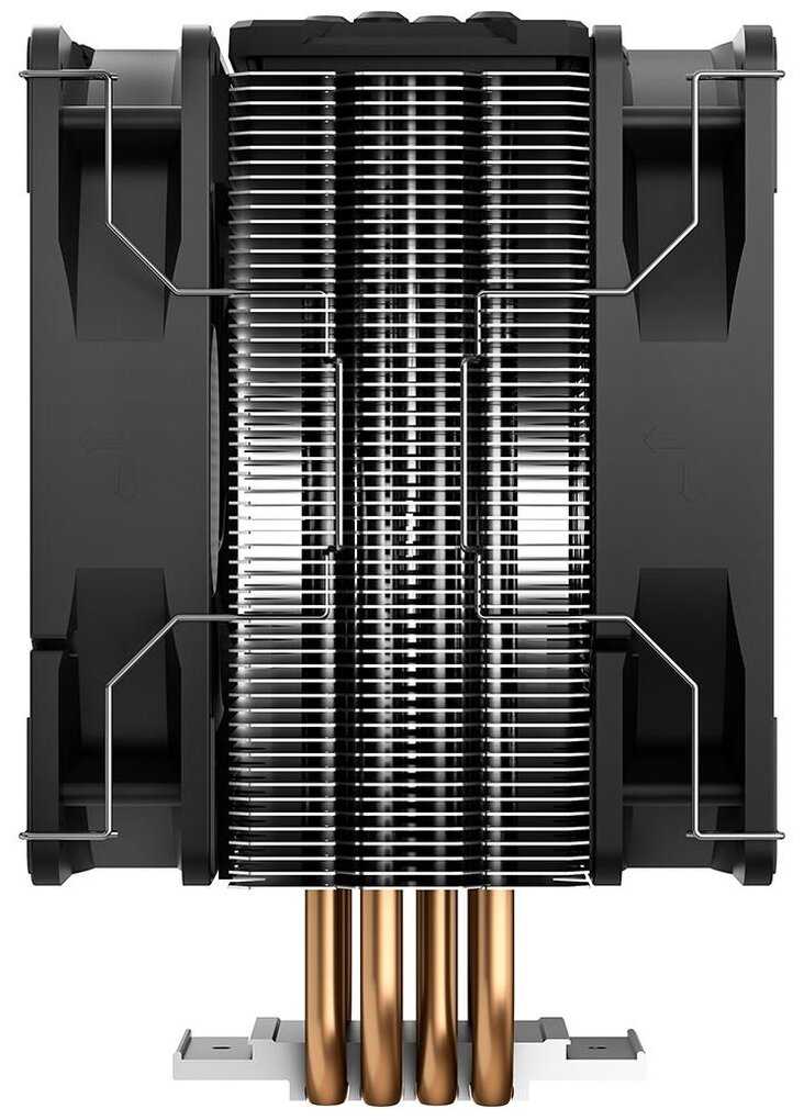 - Эффективное охлаждение благодаря четырём медным теплотрубкам и алюминиевому радиатору: