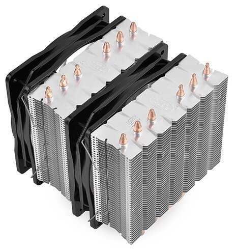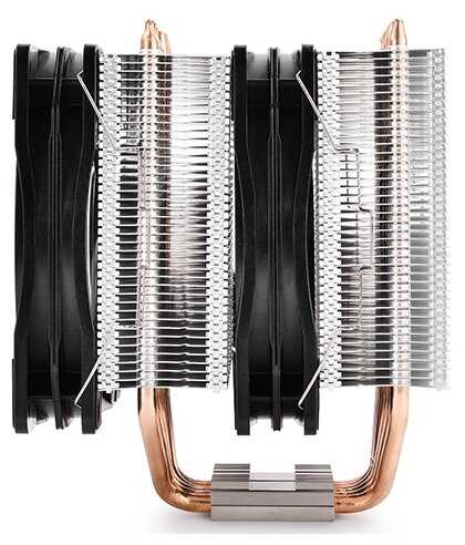 Эффективный кулер для процессора. Основание и тепловые трубки медные. Два радиатора. Два вентилятора 120 мм каждый. Простые крепления их на радиаторы. Обороты меняются от 500 до 1500 оборотов в минуту в зависимости от нагрузки.