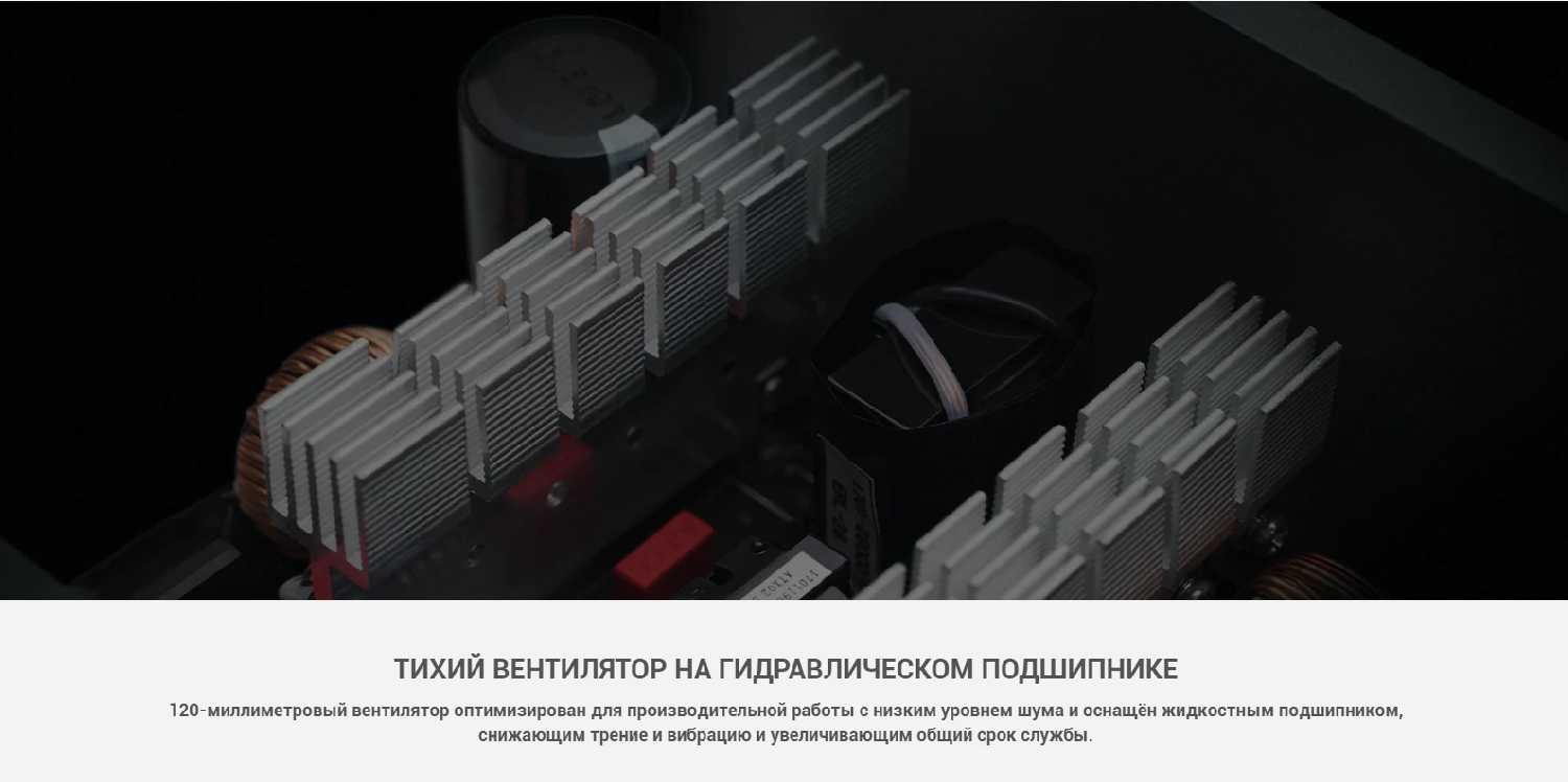 Хорошая цена, не шумный вентилятор, красивый дизайн, длинные черные провода, есть все необходимые разъемы, хорошо держит нагрузку