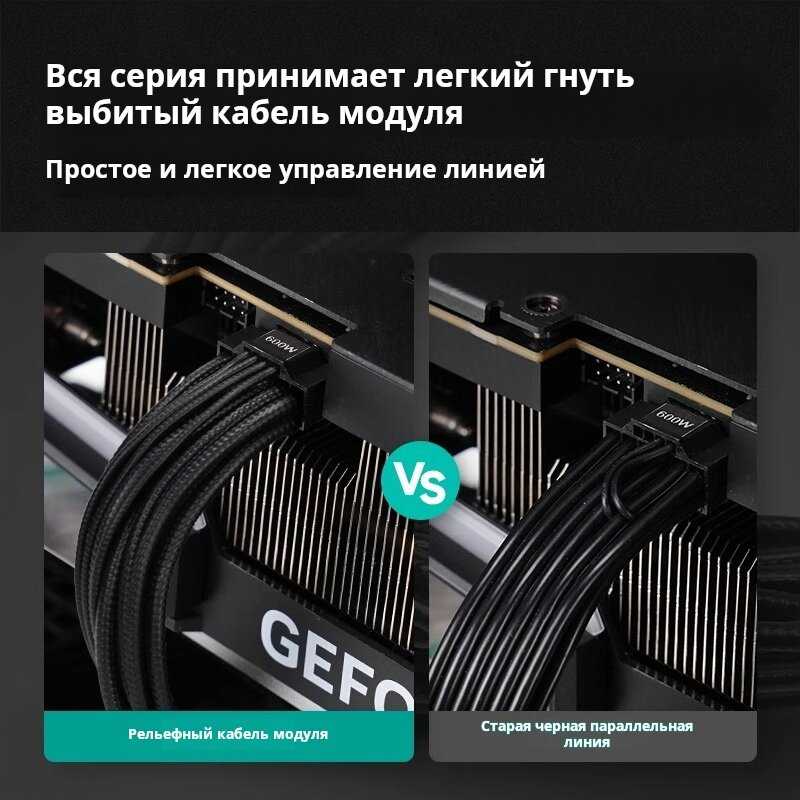 Комплектные кабели выполнены в индивидуальной тканевой оплетке, но многие пользователи отмечают их чрезмерную жесткость, что усложняет прокладку в компактных корпусах. Полная модульность позволяет подключать только необходимые кабели, однако разветвитель на кабеле питания процессора и нестандартный коннектор питания материнской платы создают дополнительные сложности. Для идеального кабельного менеджмента некоторые пользователи рекомендуют приобретать дополнительные кастомные кабели. -