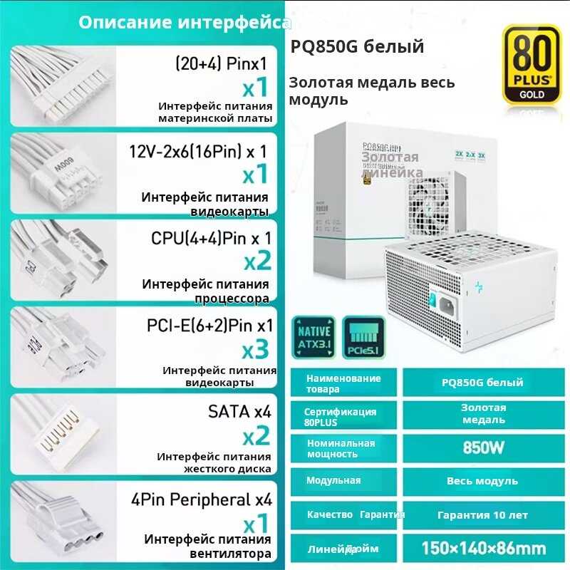 DEEPCOOL PQ850M 850W — это надёжный, тихий, полностью модульный блок питания с запасом мощности и поддержкой новых стандартов. Подходит как для требовательных геймерских сборок, так и для рабочих станций.