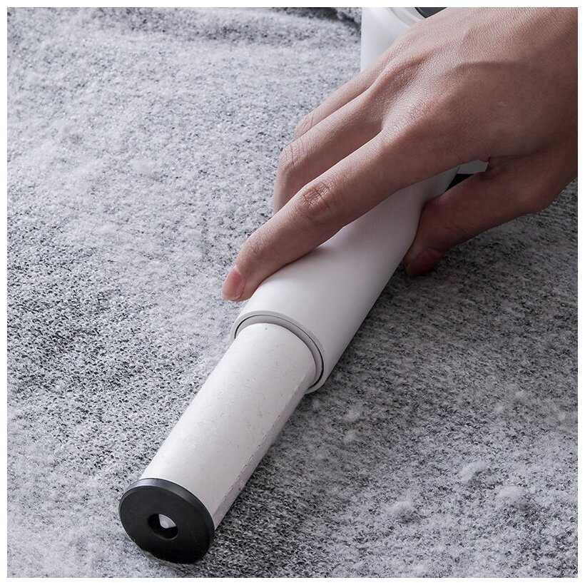 Есть ручка в которую спрятан липкий слой. +4 сменных ролика с липким слоем.