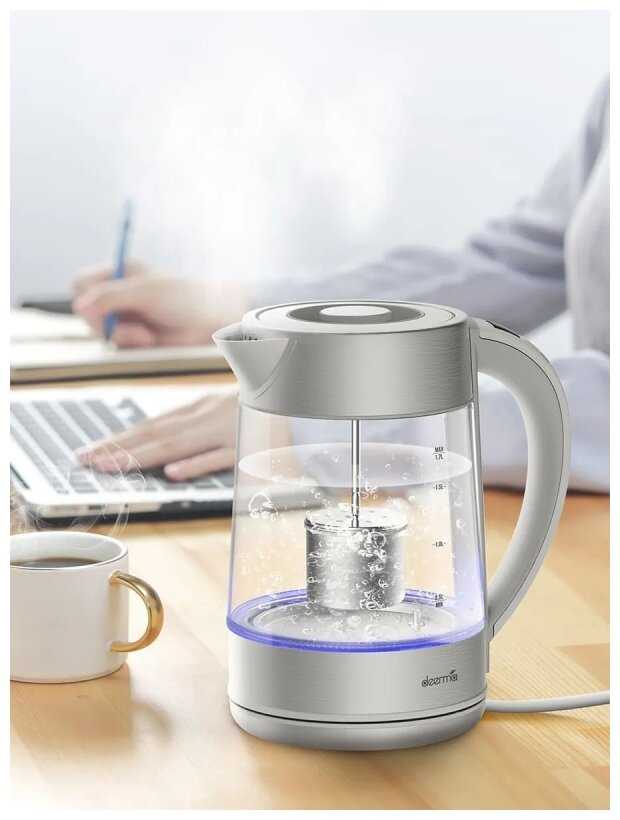 - + во-первых, деликатный нагрев до 95 градусов без закипания. пузырьки есть, но умеренные. во-вторых, кнопки - это "snap-action switch" как в мышках. вот же заморочились. из очевидного: погружной заварник и модератор в носике, облегчающий наливание в чашку, ограничивая силу струи.