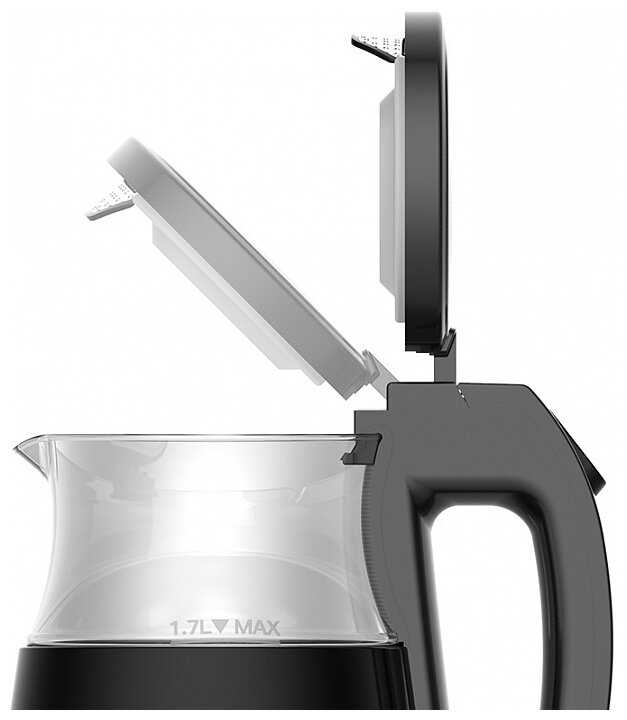 - - Жаль что нет такого в белом цвете. При нажатии на кнопку крышка открывается на 45 градусов, далее до 90 градусов можно открыть руками. Не совсем поняла, зачем так сделали. Даже на дешёвых чайниках крышка сразу на 90 градусов открывается. Перед принятием решения о покупке были сомнения из-за отсутствия шкалы для определения уровня воды, но несмотря на это купила.