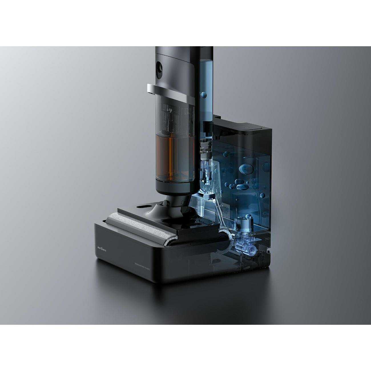- Ёмкость станции минимизирует ручное вмешательство, позволяя пылесосу самостоятельно пополнять контейнер чистой водой.