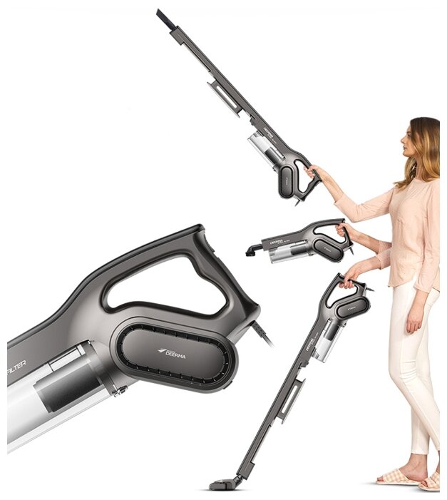 Deerma DX700S — это компактный вертикальный пылесос, который идеально подходит для быстрой уборки в небольших квартирах с преобладанием твёрдых покрытий. Его главные козыри — манёвренность, лёгкость и достаточная мощность для сбора повседневного мусора. Поворотная щётка с углом вращения 360° легко проникает под диваны и низкие шкафы, а режим ручной уборки позволяет чистить мебель и труднодоступные зоны. Прозрачный контейнер и съёмные фильтры упрощают обслуживание, а термозащита двигателя повышает надёжность.