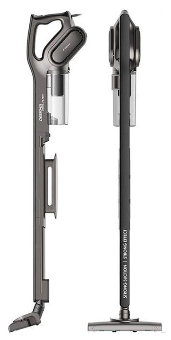 - Вертикальная конструкция занимает минимум места — пылесос можно поставить за дверью или в углу.