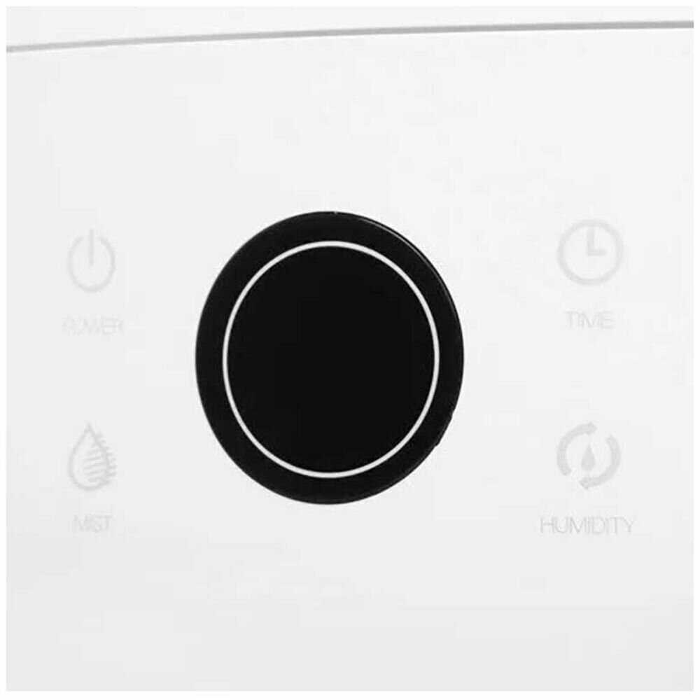 - Сенсорные кнопки регулируют мощность (3 уровня), таймер (1–12 ч) и целевой уровень влажности (40–80%).