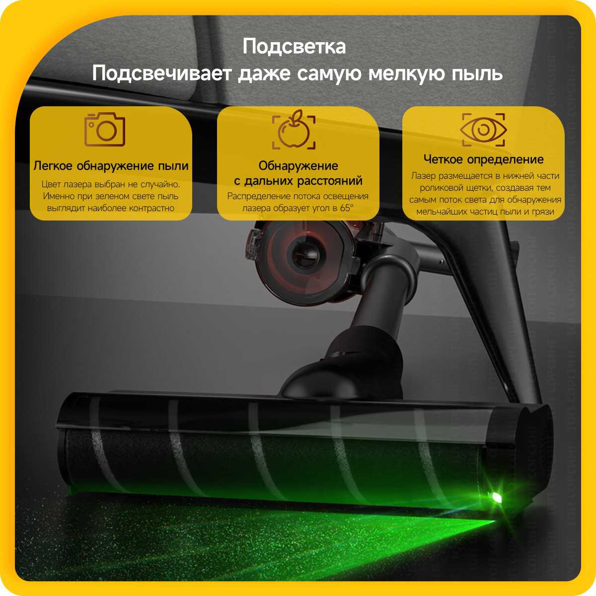 - Очень яркая подсветка, реально видно всю пыль и мусор ✨