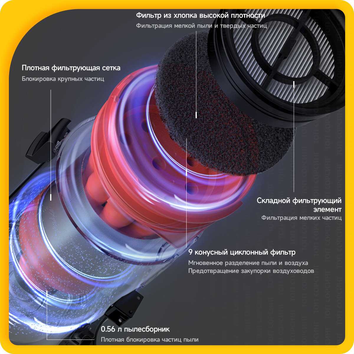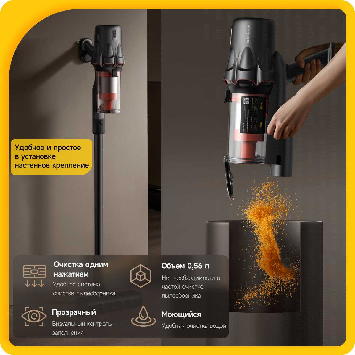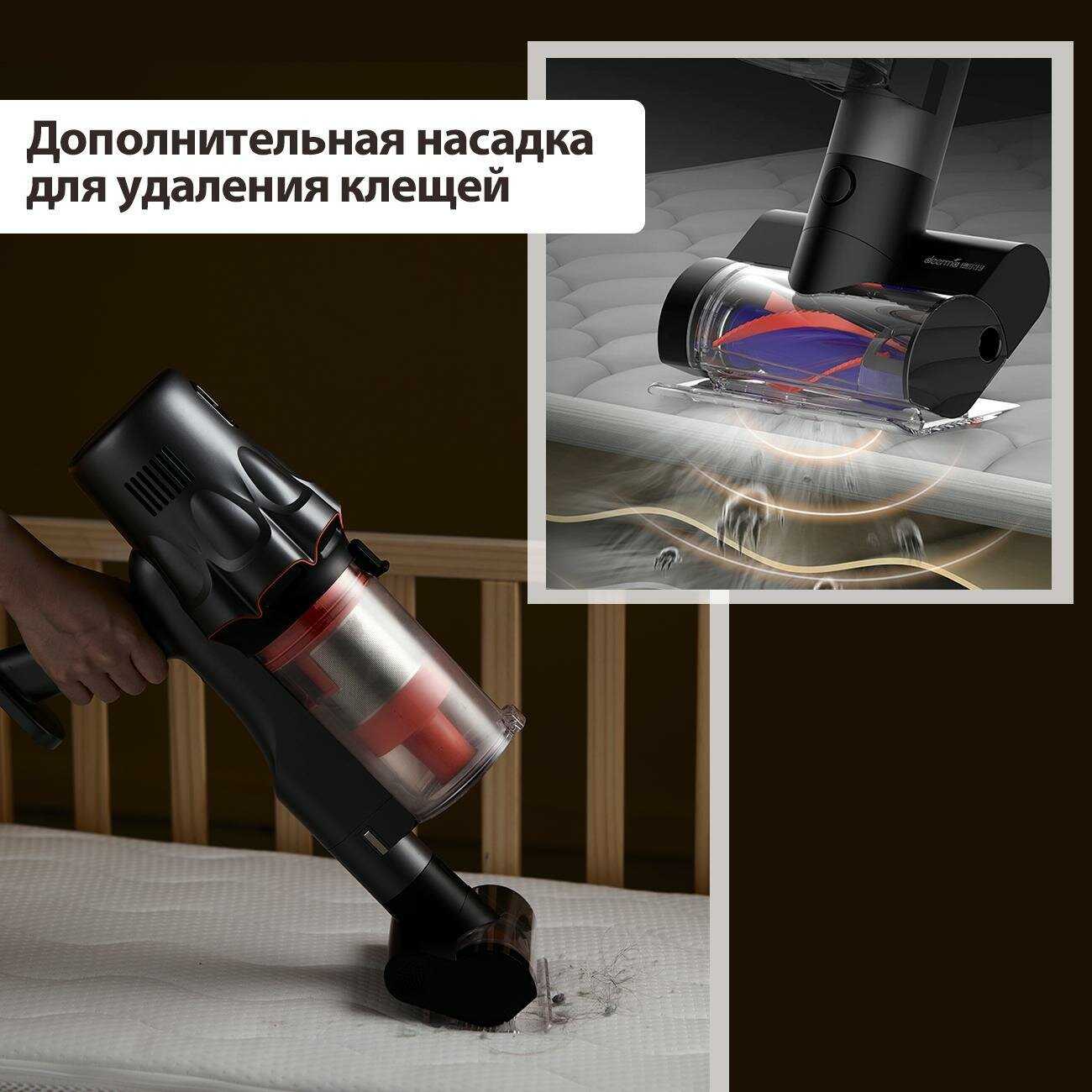 - Объемный резервуар вмещает мусор от уборки нескольких комнат, снижая частоту чистки до 3-4 использований.