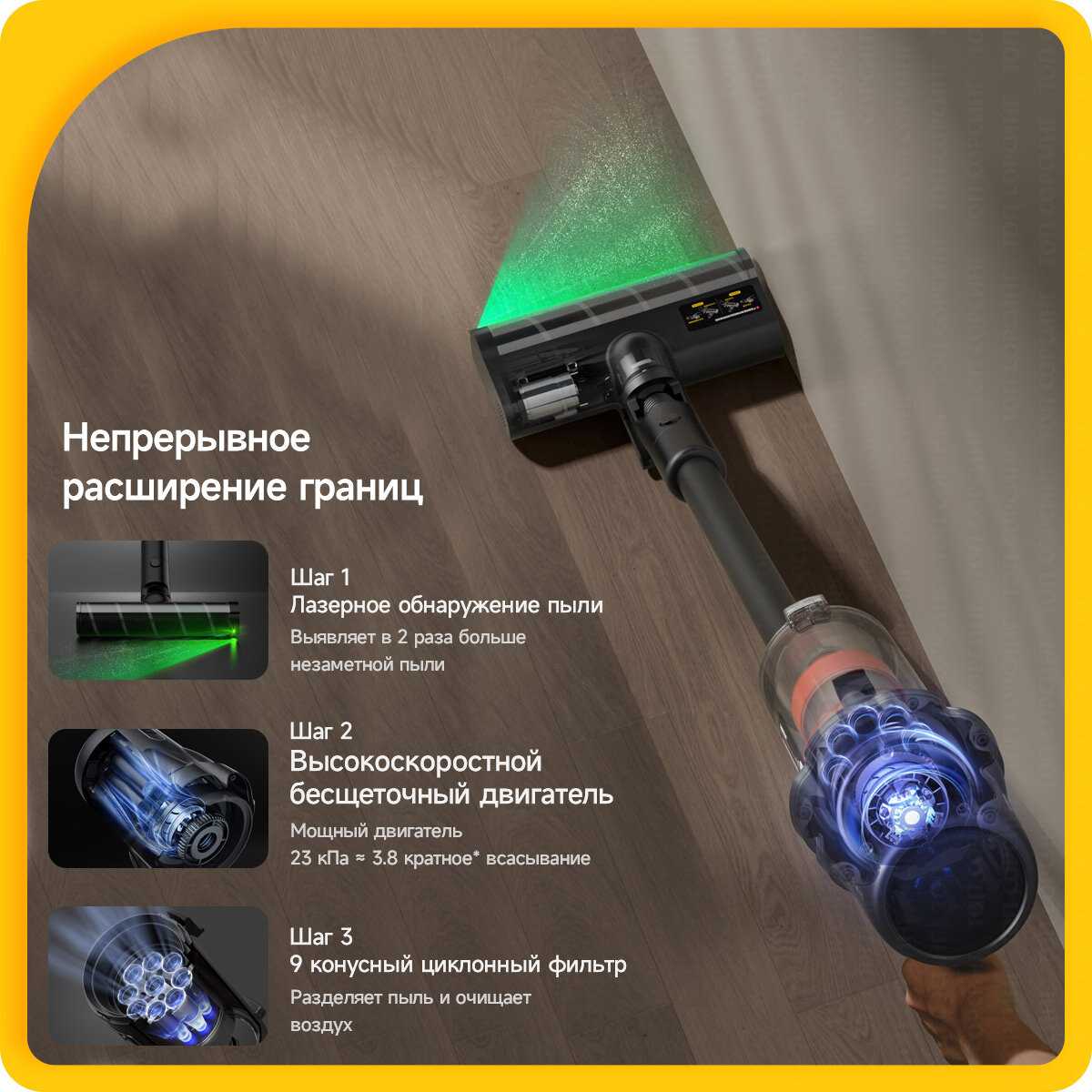 - Улучшает точность уборки под мебелью и в углах, снижая пропуски и повышая общую чистоту помещений.