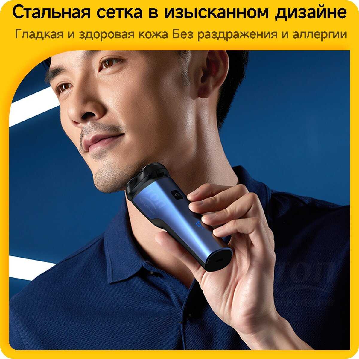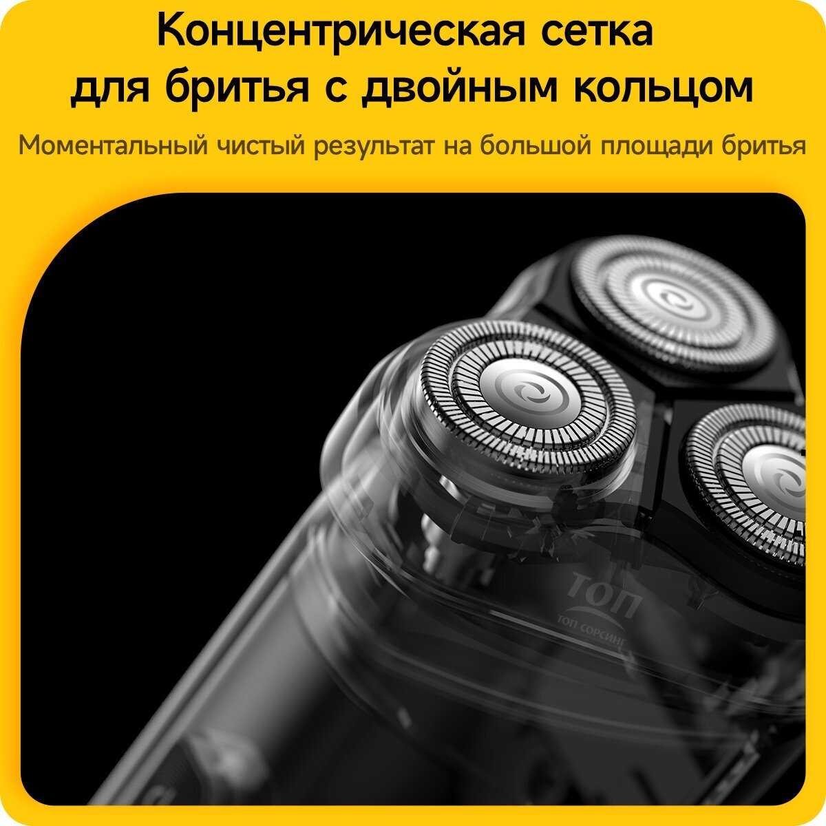 - Двухкольцевая стальная сетка с тремя плавающими головками захватывает мельчайшие волоски, бреет чисто и аккуратно без пропусков.