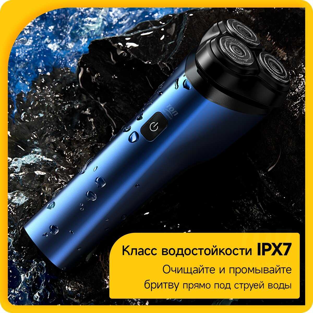 Защита от влаги очень высокая (Водонепроницаемый класс IPX7). Бритвенную головку с ножами можно промывать под струёй воды, но со стороны бритвы лучше не мочить.