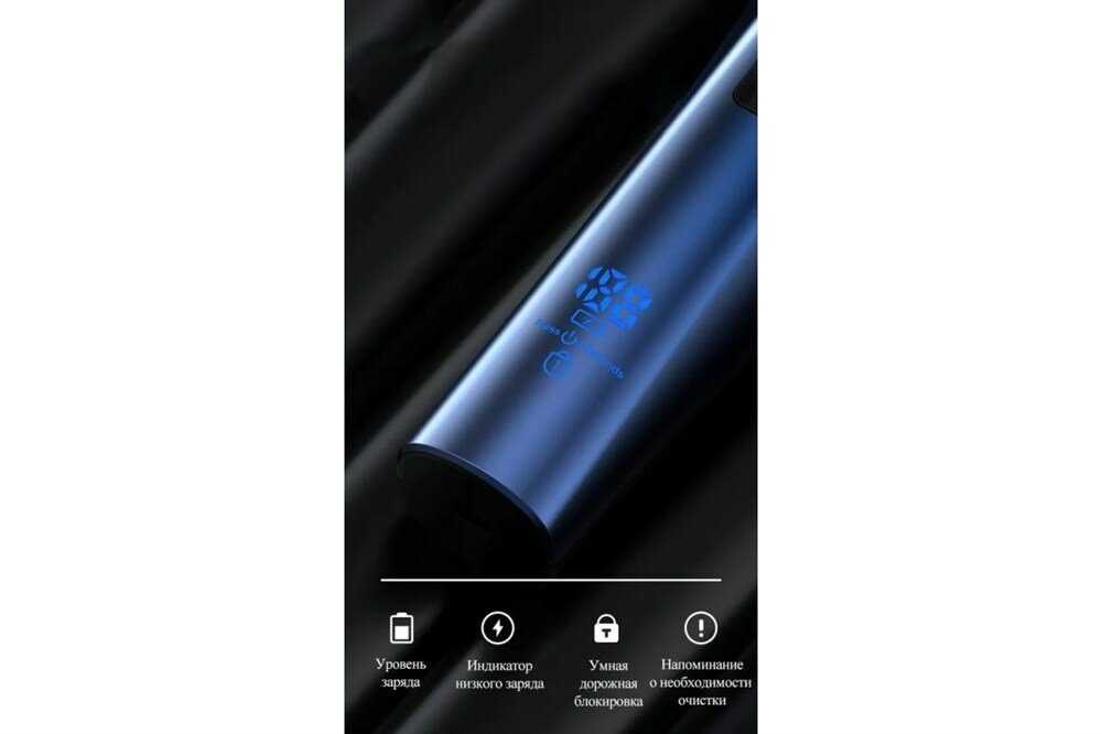 - Индикатор на дисплее точно показывает уровень заряда и напоминает об очистке, при первом использовании расходуется всего 2-4% за сеанс.