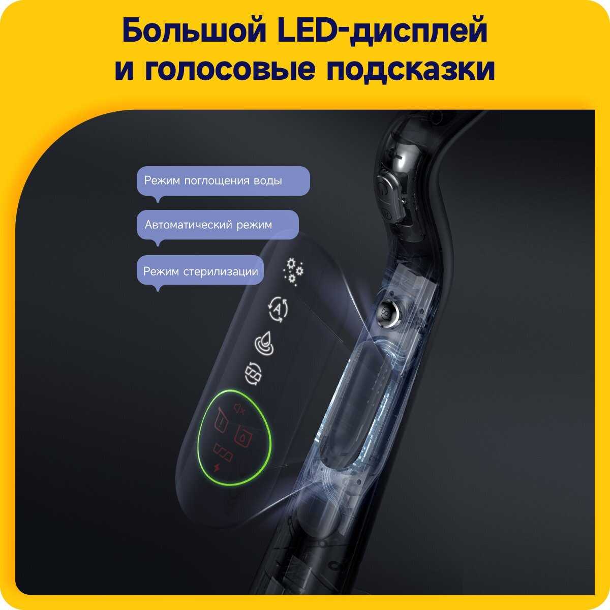 - После уборки валики автоматически промываются в док-станции за 10 минут, избавляя от ручной обработки.