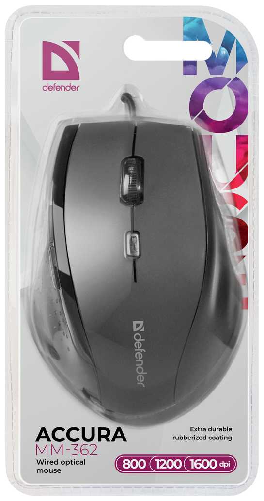 | Комплектация : | Мышь Defender Accura MM-362, USB, черный, 5btn+Roll |