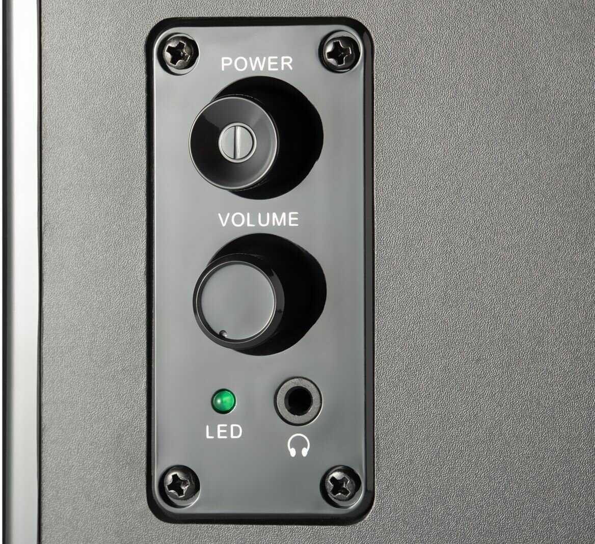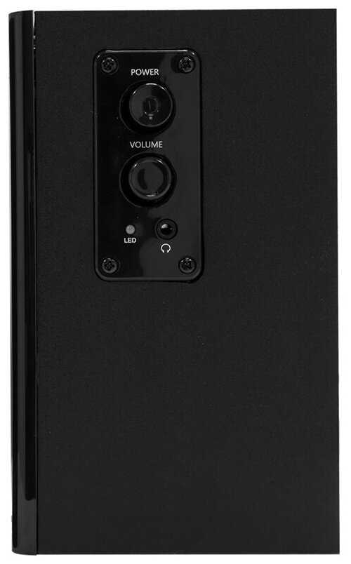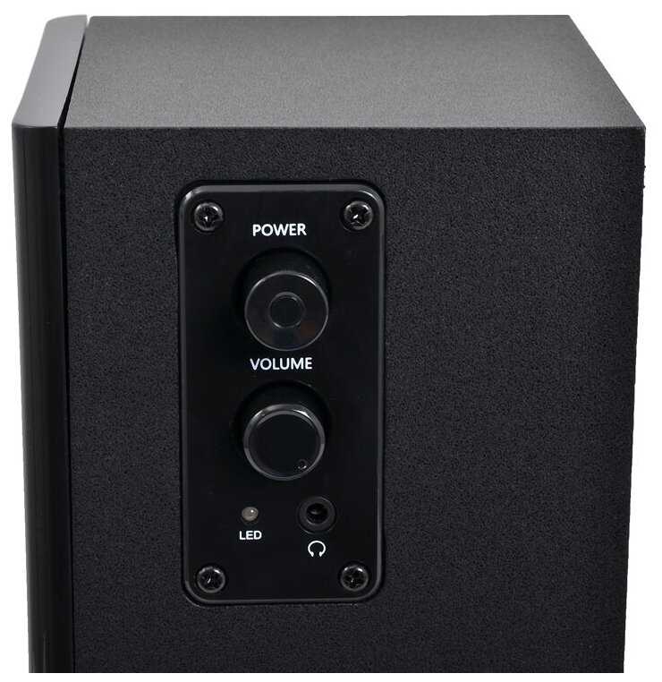 Колонки компактны, имеют крупные регуляторы громкости и кнопку питания на боковой панели, что удобно для размещения на столе. Однако кабель между правой и левой колонкой короткий и ненадёжный — при натяжении возможны перебои звука. Разъём для наушников запитан напрямую от входа, минуя усилитель, что делает его бесполезным: уровень сигнала остаётся низким, а в некоторых моделях появляется сильный фон. Регулятор громкости со временем начинает дребезжать, а кнопка питания — люфтить, что приводит к потере контакта и необходимости «дёргать» элементы управления для восстановления звука.