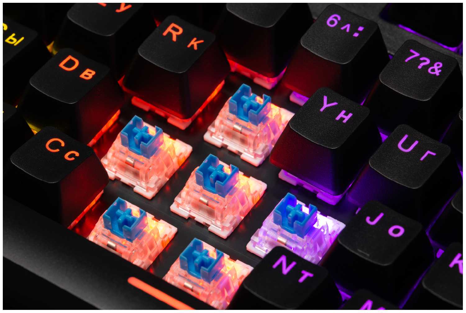 - Тактильные синие свитчи с чётким откликом и приятным звуком:
