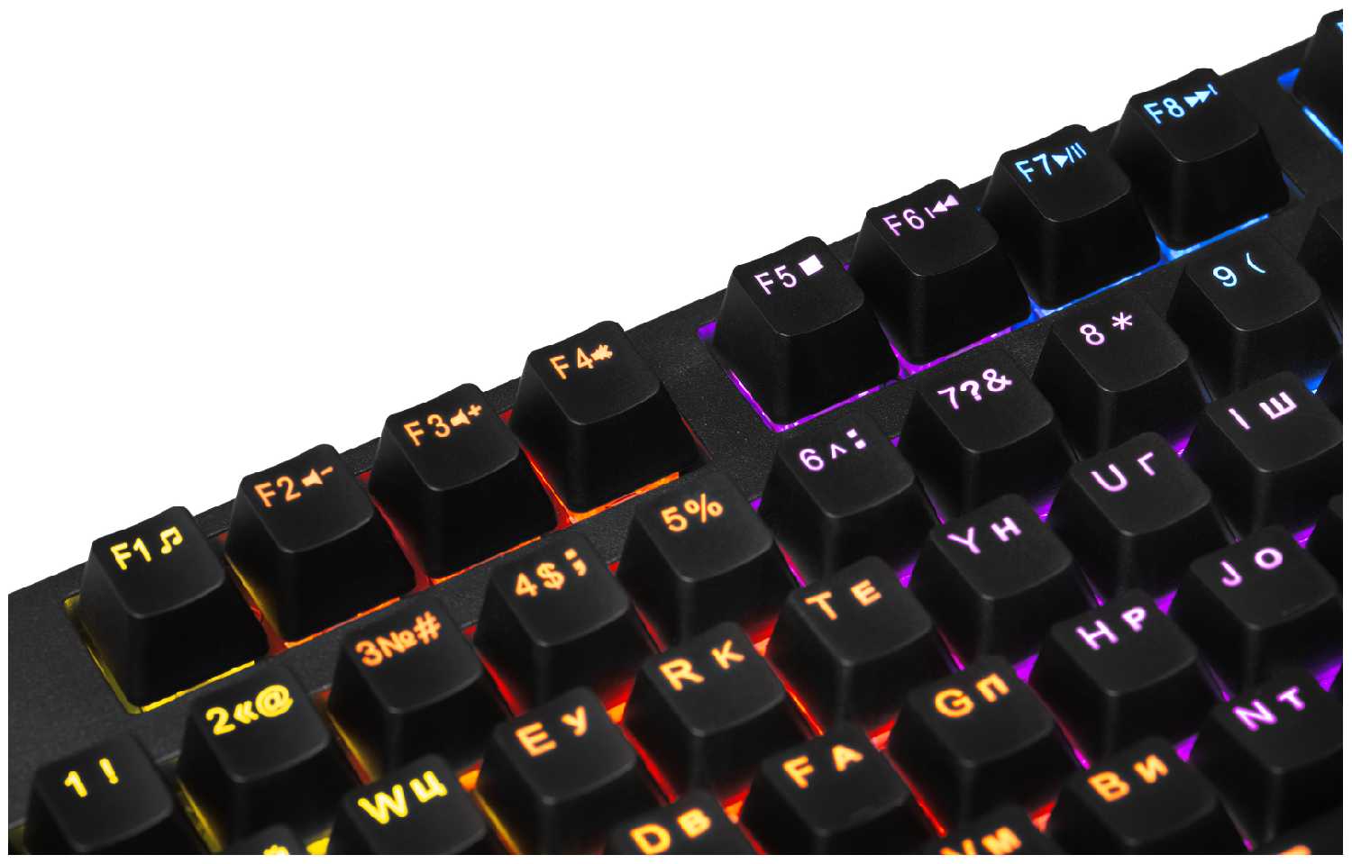 - Светодиоды под кейкапами обеспечивают чёткую видимость символов даже в темноте.