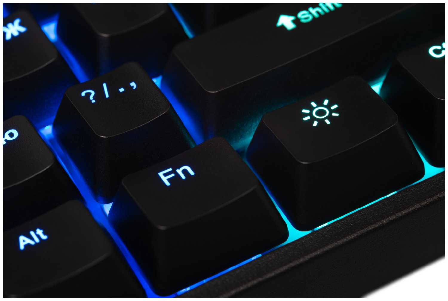 - 17 режимов подсветки, включая пульсацию и статичные градиенты, управляются через комбинации с FN.
