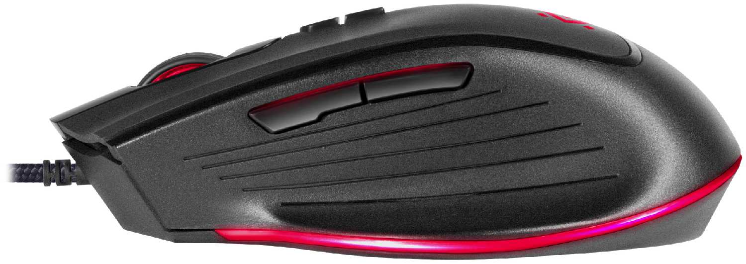 - + Лёгкая, практически классическая форма с добавлением полочки под большой палец очень удобно, выбор DPI из четырёх вариантов, длинный шнур в оплётке и с ферритовым кольцом.