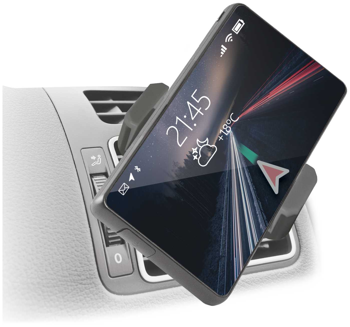 - Малые габариты (ширина зажима — 6 см) позволяют установить держатель даже на узкие решётки воздуховода, как у Duster.