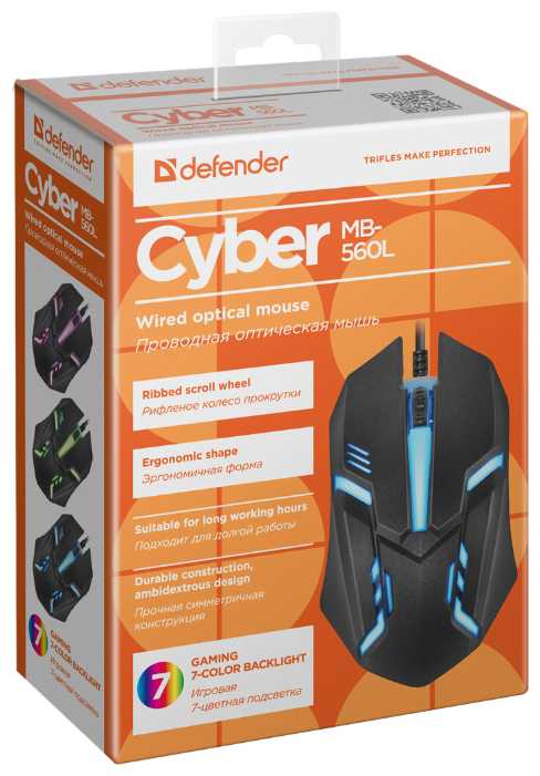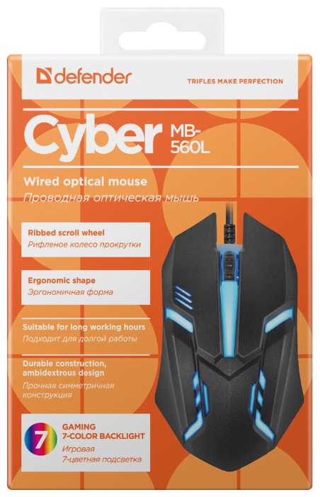 Отзывы о Мышь компьютерная игровая с подсветкой RGB Defender Cyber, 1600 dpi, черная