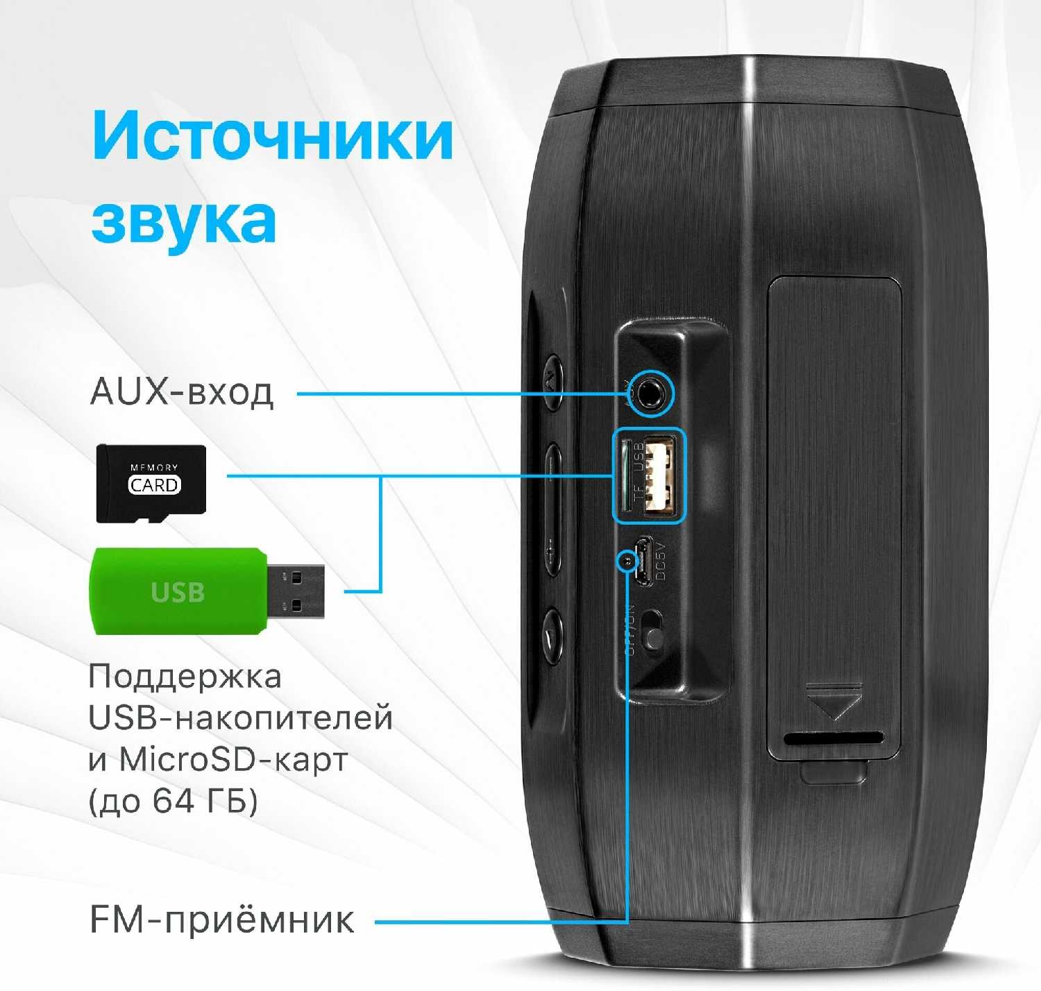 Наконец нашел недорогую и очень хорошую колоночку.Чтобы с приемником с хорошей чувствительностью(можно еще антенну воткнуть) и держал хорошо заряд. Ничего не люфтит и дизайн приятный.А еще ,как приятный бонус можно легко поменять батарейку(аналогов полно) на более мощную по заряду.Очень доволен ,спасибо. p.s И еще ,звук по громкости вполне достойный.