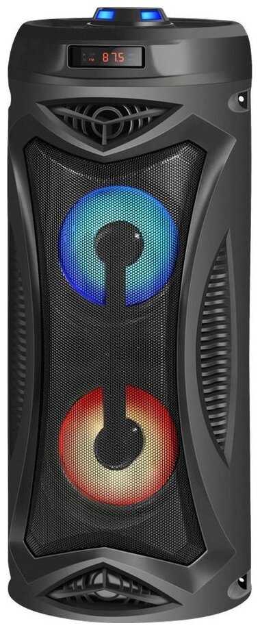 - + Играет громко, звучание приемлемое для такой балалайки. Есть все возможные входы для источников звука, включая микрофон. Подсветку можно отключить. Есть табло, на котором выводится режим, частота станции и уровень громкости. Механический выключатель.