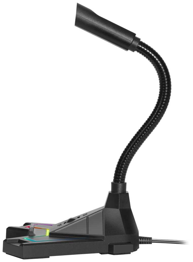 - + Купил попробовать, потому что гарнитура надоела и решил перейти на колонки и микрофон. Купил этот недорогой в общем-то микрофон. Понравился тем, что могу изгибать его как угодно, ножка сделана так, что устойчиво стоит при любом изгибе. Качество звука с микрофона тоже понравилось, намного глубже, чем с гарнитуры. Кнопка включения/выключения прямо перед тобой, легко доступна. Подсветка сильно не впечатлила, хотя совсем не против её, у меня и мышка светится, и клавиатура, и колонки светятся, так что ничего страшного.
