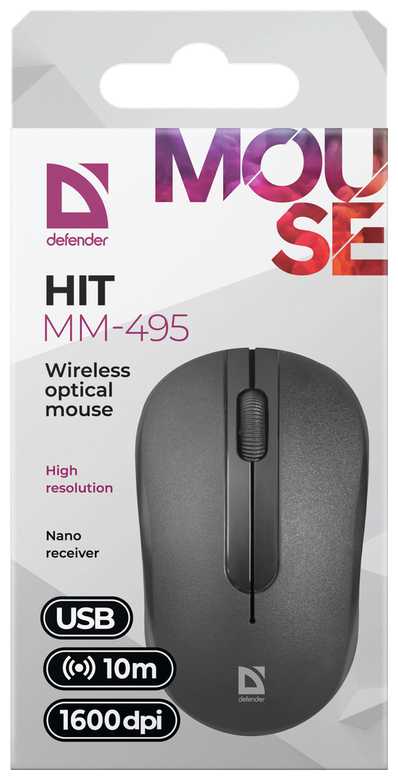Отзывы о Мышь беспроводная компьютерная Defender Hit MM-495 черная, 3 кнопки, 1600 dpi