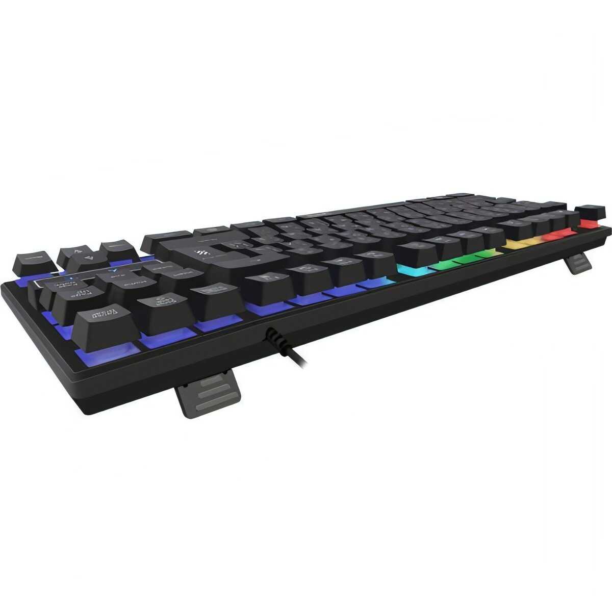 Отличная игровая клавиатура за небольшие деньги. Очень удобно на ней играть благодаря подставкам на ножках, с помощью которых можно регулировать наклон клавиатуры. Кнопки сделаны из приятного на ощупь пластика мембранного типа, в ходе нажатия практически бесшумные. Цифры и буквы четкие, не стираются.
